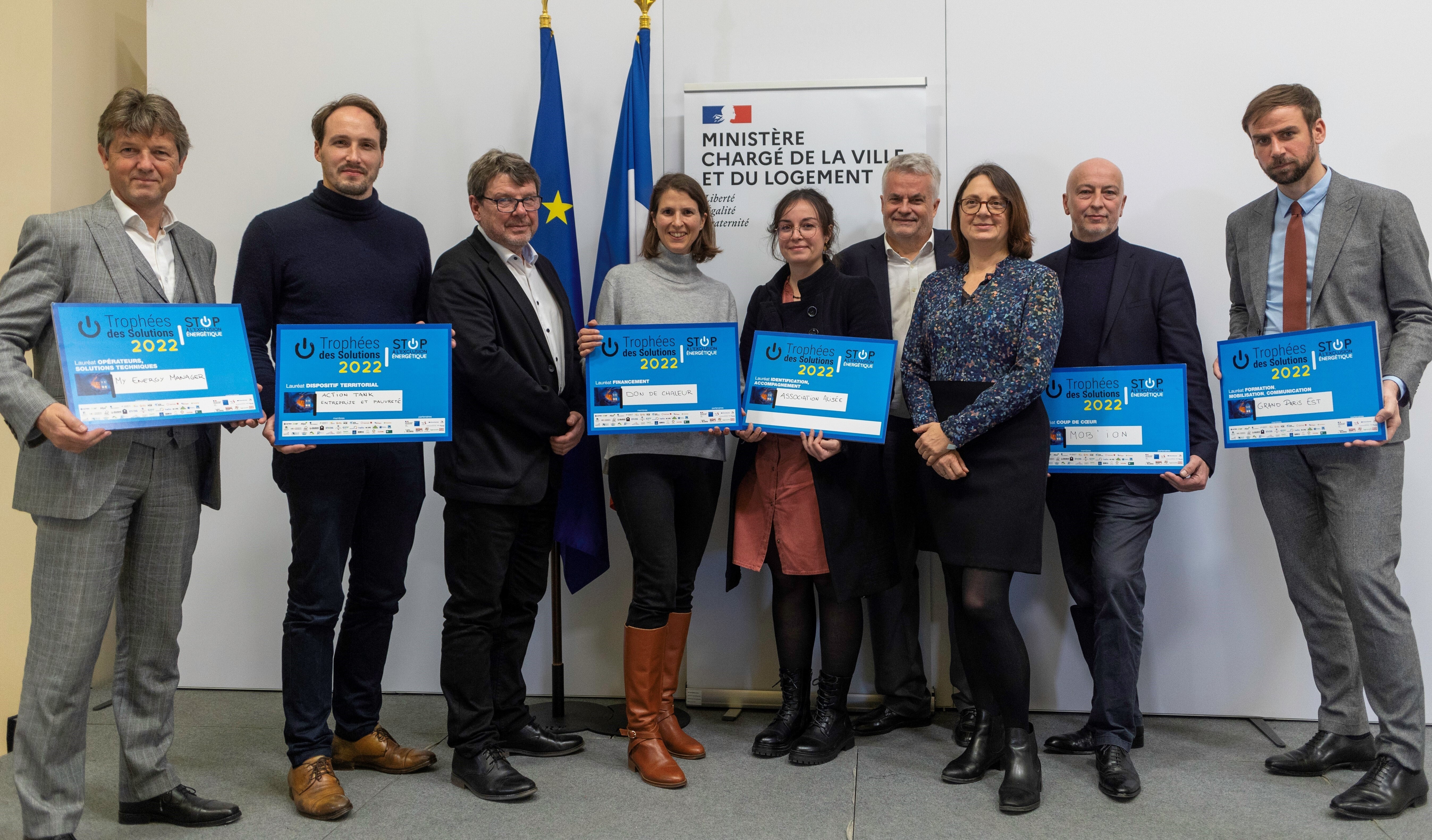 Trophée de la Solution Territoriale : Action Tank Entreprise et Pauvreté cofondé par Martin Hirsh et Emmanuel Faber pour la « Rénovation-densification de copropriétés dégradées » Ile de France Trophée de la Solution Financement : Don de Chaleur grand défi de solidarité énergétique pour mobiliser 1 million de français autour d'une réduction volontaire de leur consommation d'énergie Trophée de la Solution Identification et Accompagnement : Association Alisée pour l'accompagnement réno « Watt for Change » des publics aux ressources modestes du Pays de la Loire Trophée de la Solution Formation, Mobilisation, Communication : Métropole Grand Paris Est pour leur stratégie d'accompagnement et de formation des artisans vers la labellisation RGE Trophée de la Solution technique et numérique : NrLink® de My Energy Manager, un boitier de captation et d''des données d'énergie pour suivreaffichage en conscience ses consommations 2 Trophées Coup de Cœur : SolidarMob de Mob'ion, scooters électriques français à tarif social pour les jeunes de 14 à 25 et en formation ; et le Triporteur numérique de GLEAM Pimms Médiation Mayenne Sarthe qui offre un accompagnement pédagogique lié à l'énergie